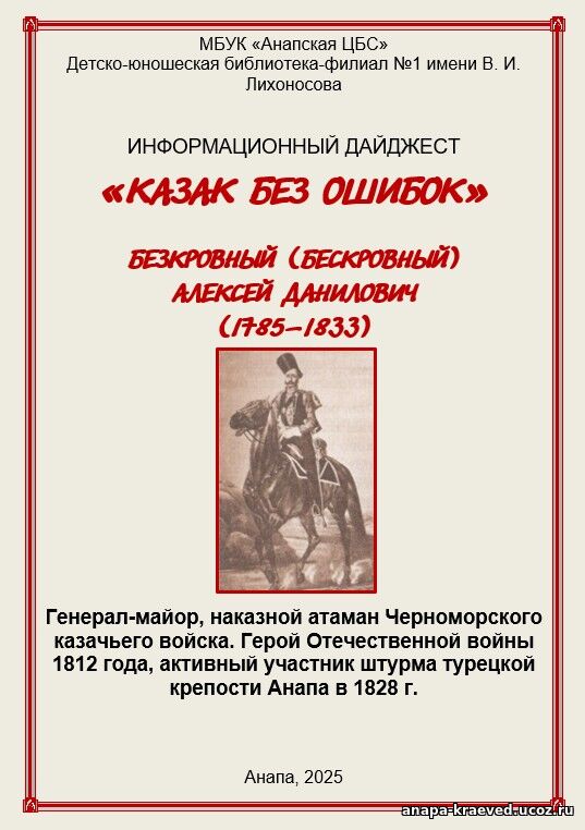 К 240-летию со дня рождения генерал-майора, наказного атамана Черноморского казачьего Войска А.Д. Безкровного представляем информационный дайджест «Казак без ошибок».