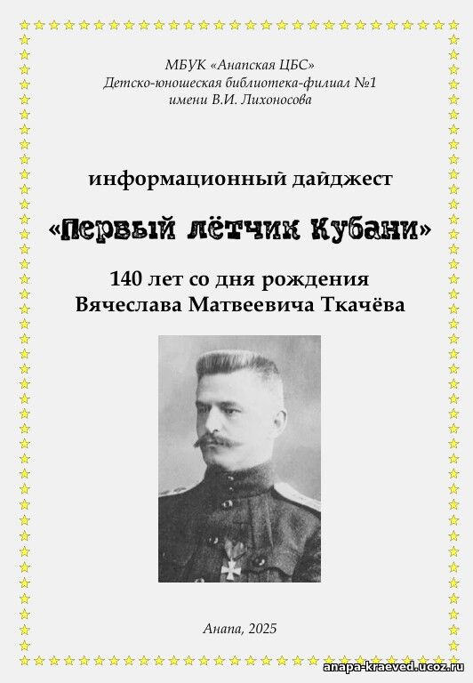 К 140-летию со дня рождения русского казачьего артиллерийского офицера, участника Первой мировой войны Вячеслава Матвеевича Ткачёва представляем информационный дайджест «Первый лётчик Кубани».